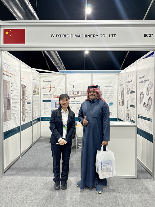 Durante la mostra, RIGID si è concentrato sulle attrezzature intelligenti per piattaforme sospese per lavori alti autosviluppate, sulla tecnologia delle attrezzature per l'arrampicata su corda e su vari tipi di paranchi intelligenti per carichi con equipaggio, attirando visitatori professionali dall'Arabia Saudita, dagli Emirati Arabi Uniti, dall'Egitto e da altri paesi del Medio Oriente, Europa e Stati Uniti per fermarsi e negoziare. L'azienda ha dimostrato ai clienti l'efficienza e la sicurezza dei suoi prodotti in grattacieli, manutenzione di ponti, installazioni di energia eolica e altri scenari, e ha raggiunto intenzioni iniziali di cooperazione con una serie di appaltatori di ingegneria internazionali.